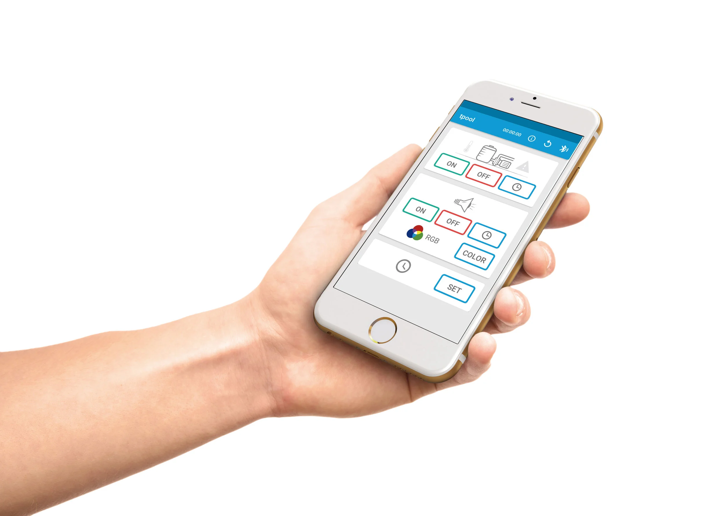 The heart of FlowStart is a small control module, which is housed within an attractive, yet robust watertight enclosure. The module can then be controlled either locally or remotely via a TPool smartphone App and a Bluetooth™ connection.
